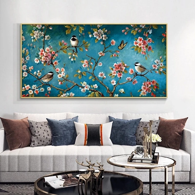 Классическое настенное искусство, цветы и птицы, холст, художествен...