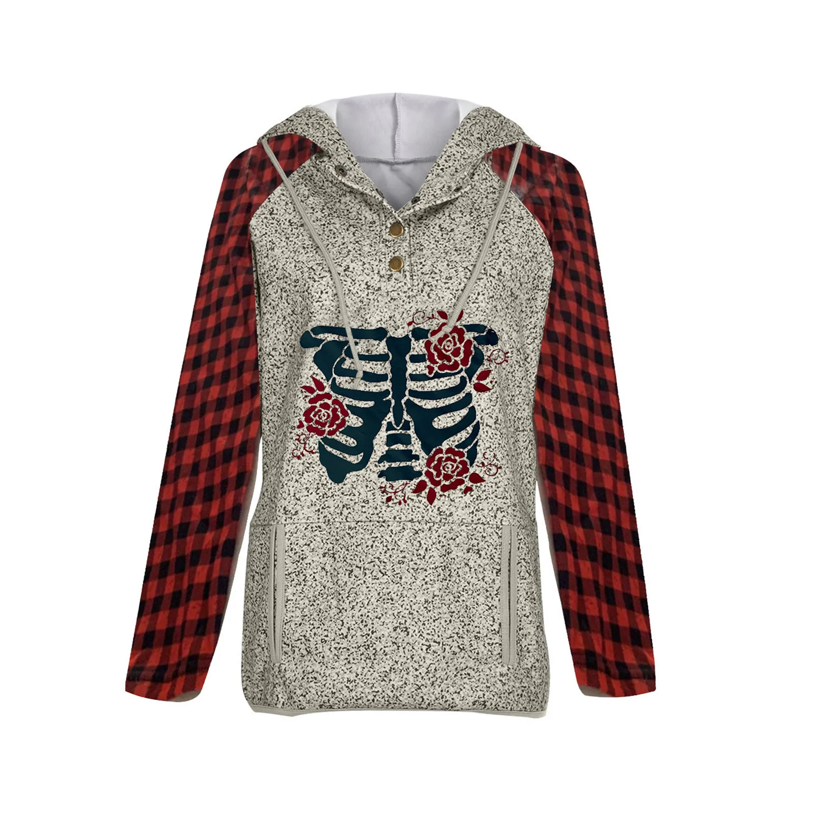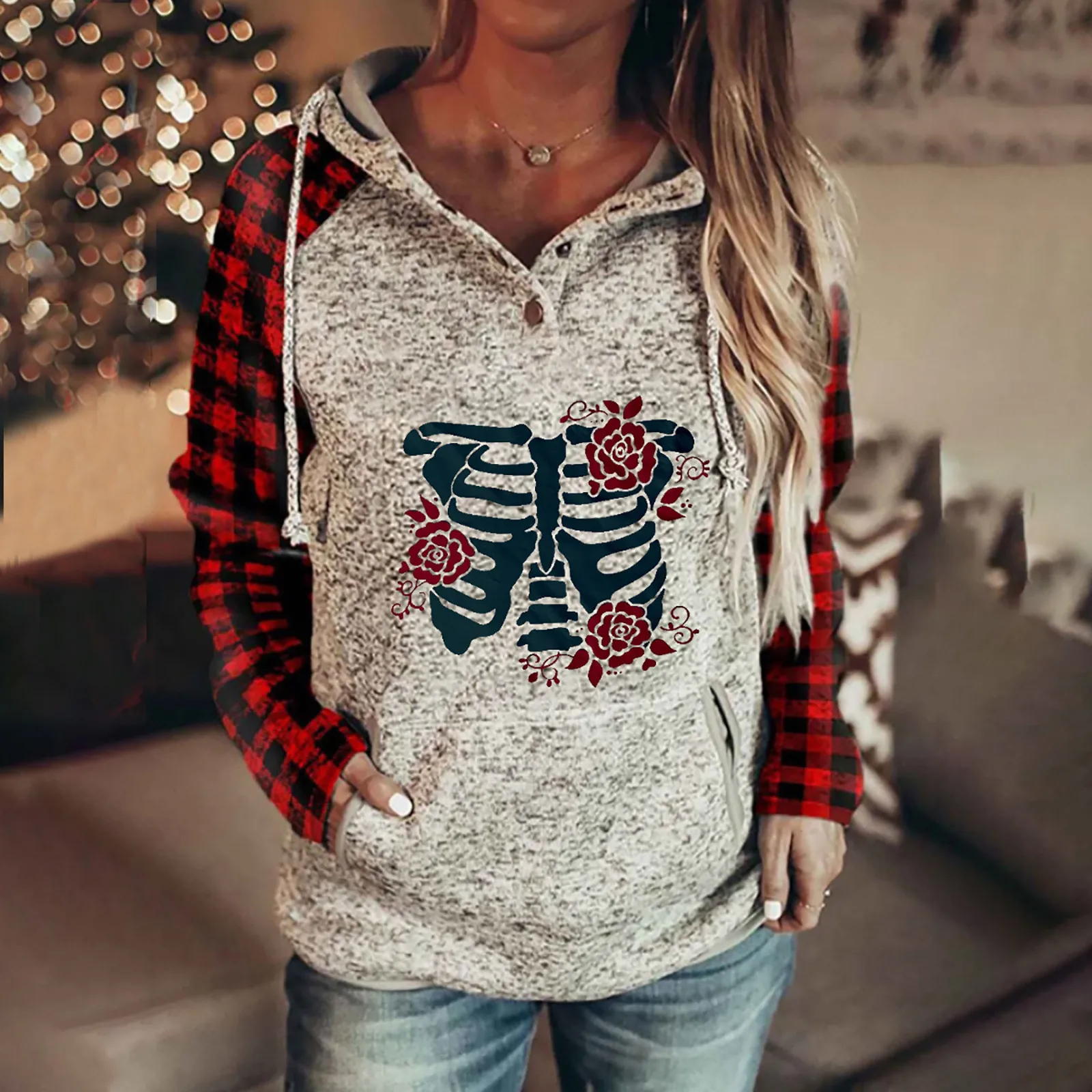 Толстовка женская с капюшоном, свитшот с круглым вырезом и длинным рукавом, с принтом в клетку, с капюшоном Kangaro