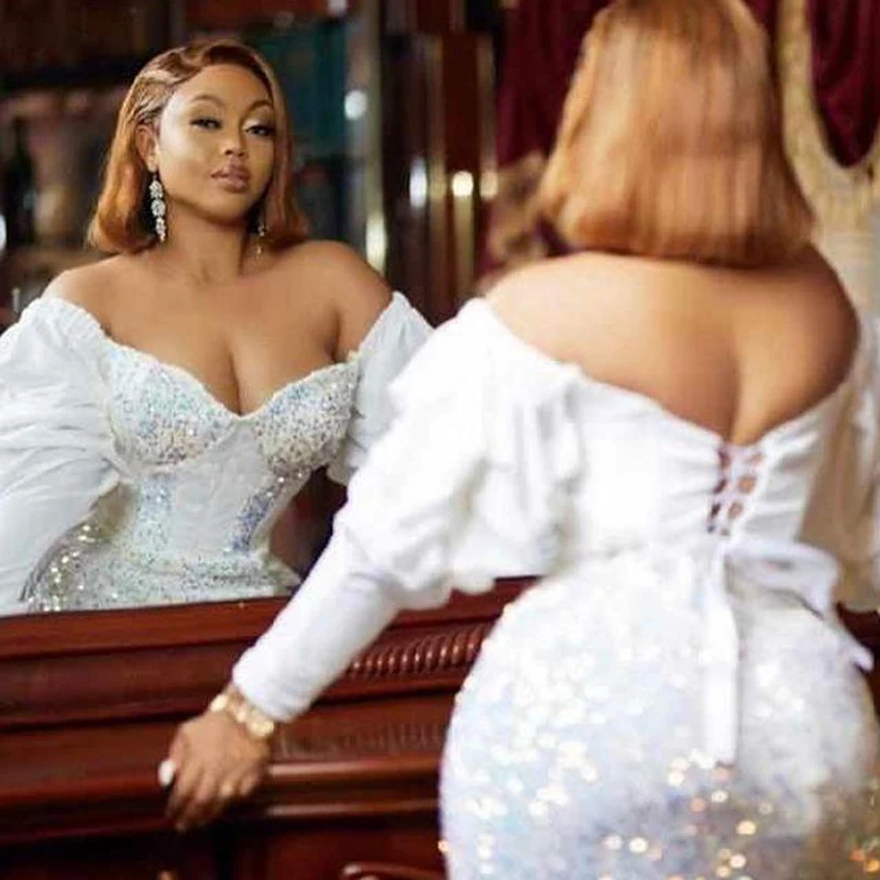 Вечернее платье-Русалка Aso Ebi, пышное платье большого размера с разрезом по бокам, длинными рукавами, открытыми плечами и шнуровкой, для выпускного вечера