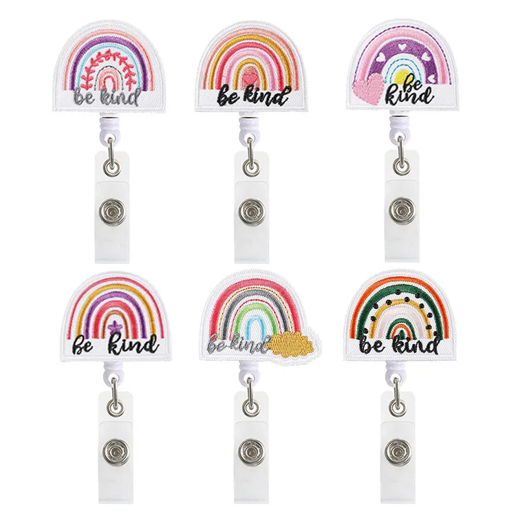 Новый дизайн 2021, 1 шт., выдвижной брелок из фетра радужной расцветки, для медсестры, врача, удостоверения личности, бейдж, брелоки, ремешок, зажим крокодил