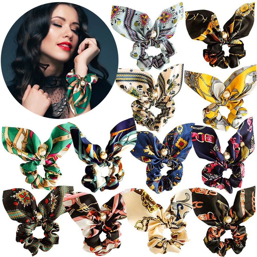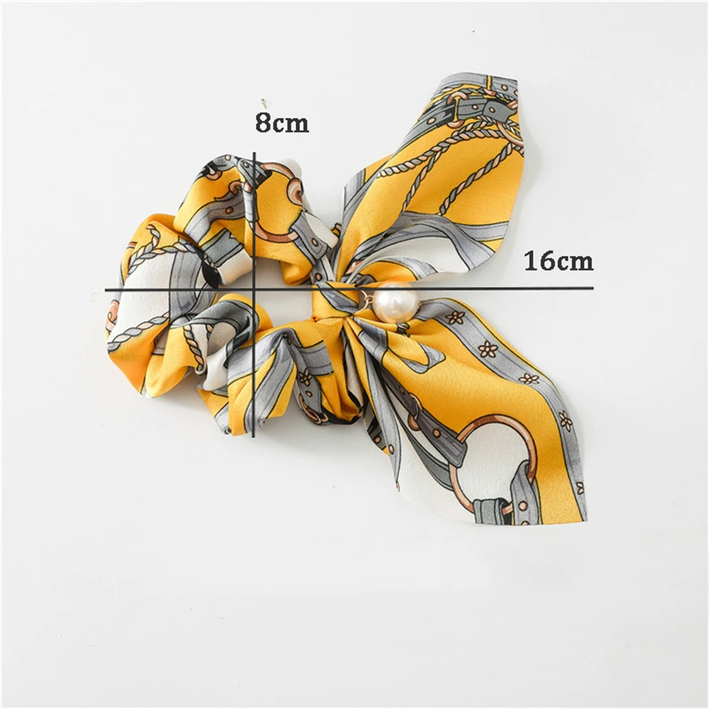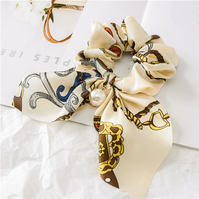 Женская модная Жемчужная Повязка на голову с бантом для конского хвоста, эластичная веревка для волос, заколки, цветочные аксессуары для волос для женщин