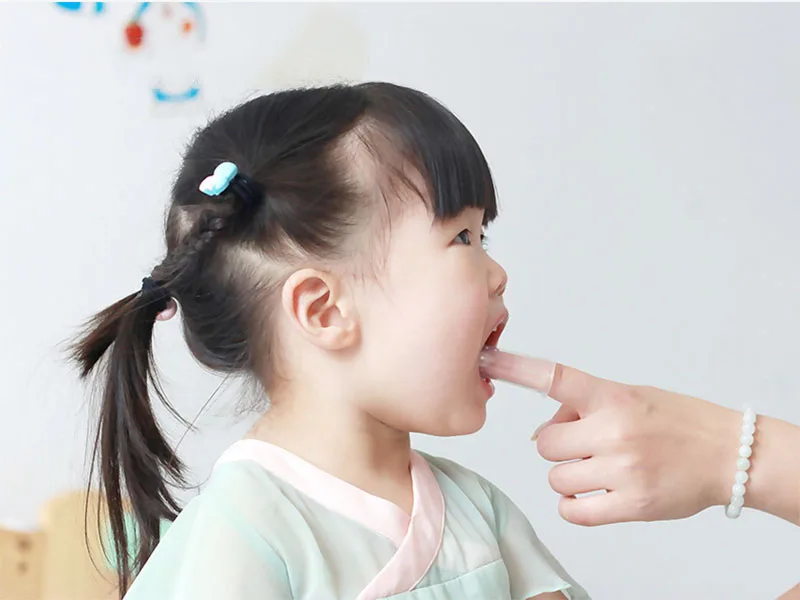 [Использование] Нанесите зубную щетку на указательный палец матери, поднимите ребенка вверх и вниз и непосредственно очистите зубы ребенка, рот и язык. Когда ребенок зуд в передней корне длинных лиственных зубов, мать может положить Лиственные зубы на указательный палец, чтобы помочь ребенку массировать корни.