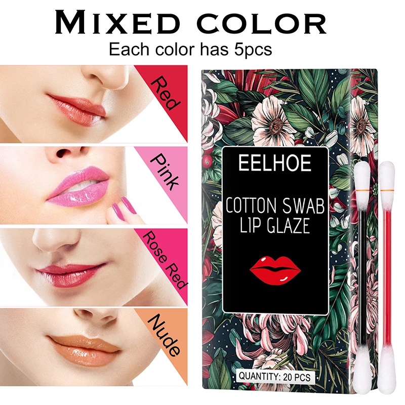 20 шт.компл. губная помада с микрощёткой, долговечные водонепроницаемые одноразовые кисти, ватные палочки для губ, чехол для сигарет, глазурь для губ TSLM1