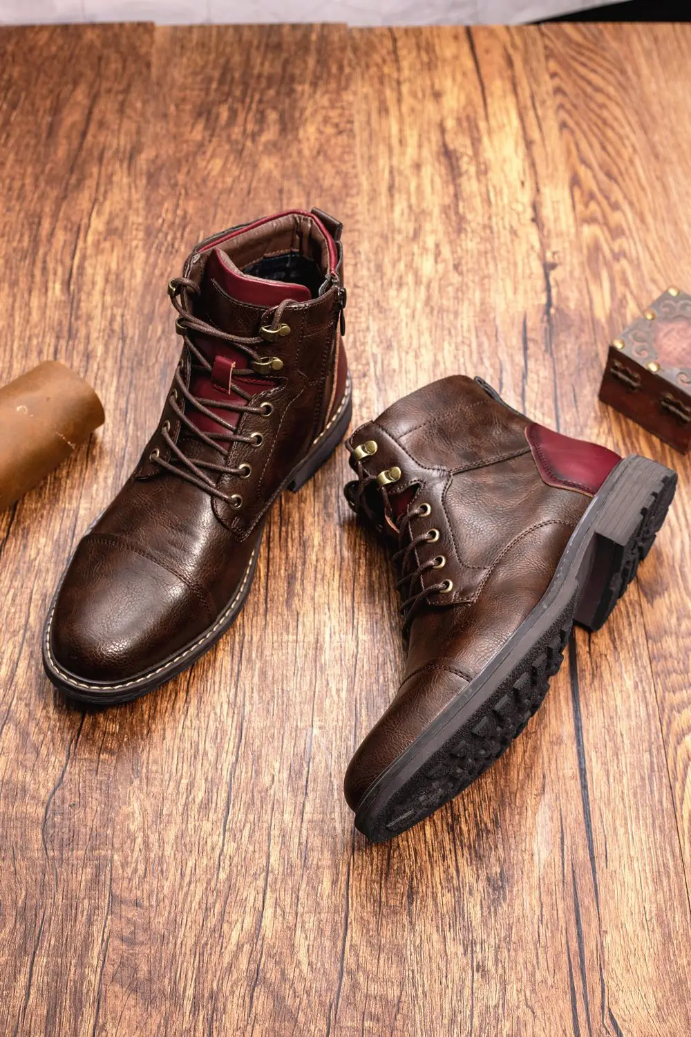Ботинки zyyвмещающие лодыжки мужские кожаные на молнии, со шнуровкой, в винтажном стиле, 3787