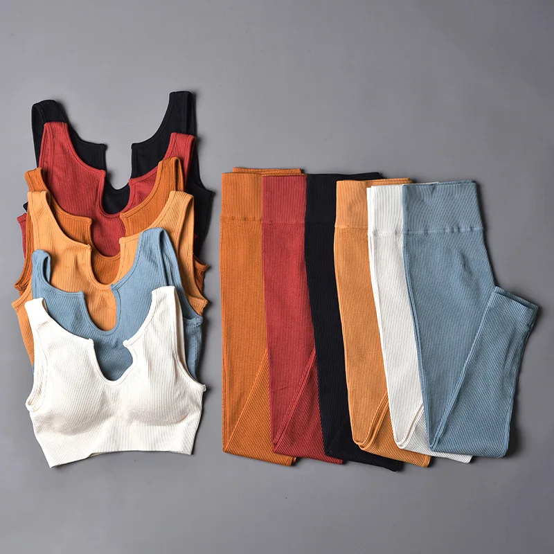 12 шт. женский бесшовный комплект для йоги, спортивная одежда для фитнеса, одежда для спортзала в рубчик, тренировочный спортивный костюм, спортивный костюм, спортивный бюстгальтер, леггинсы, наряд