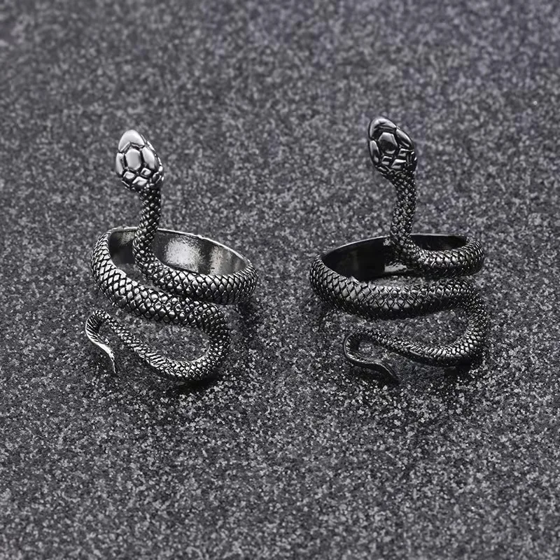 Мужские и женские кольца в стиле панк, регулируемые кольца со змеин...