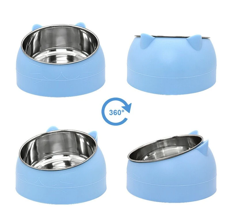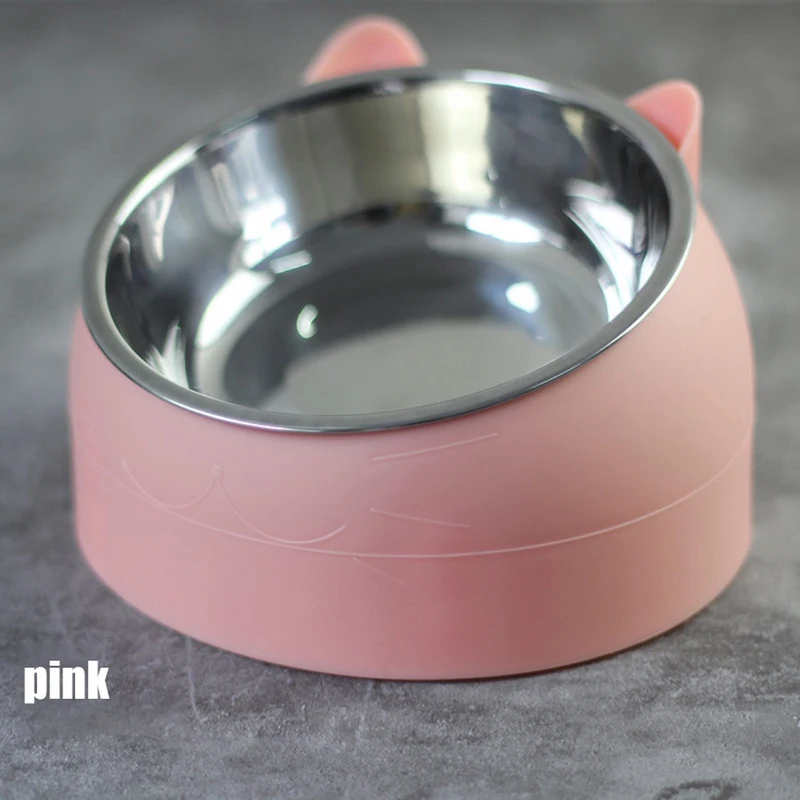 Миска для домашних питомцев, безопасная Нескользящая миска из нержавеющей стали для кошек и собак, защита шеи, 15 градусов
