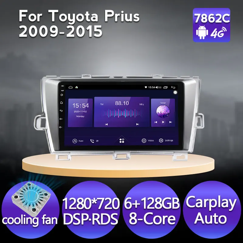 Android 11 автомобильный радиоприемник для Toyota Prius 20092014 -2015 4G IPS 1280*720 8-ядерный GPS навигатор DSP Carplay мультимедийный плеер FM вентилятор