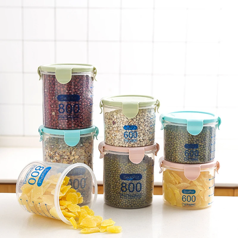Пластиковый Герметичный пищевой контейнер, герметичная емкость для хранения с крышкой, банка для приправ и хлопьев, герметичная емкость для муки, кухонные принадлежности MUMR999