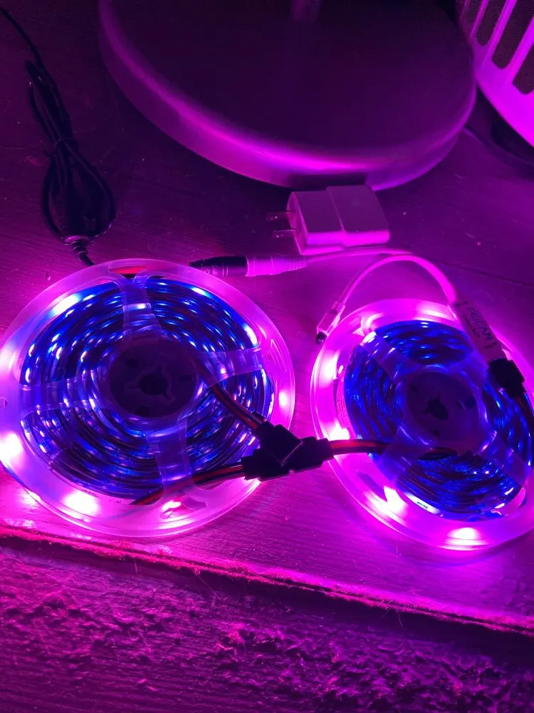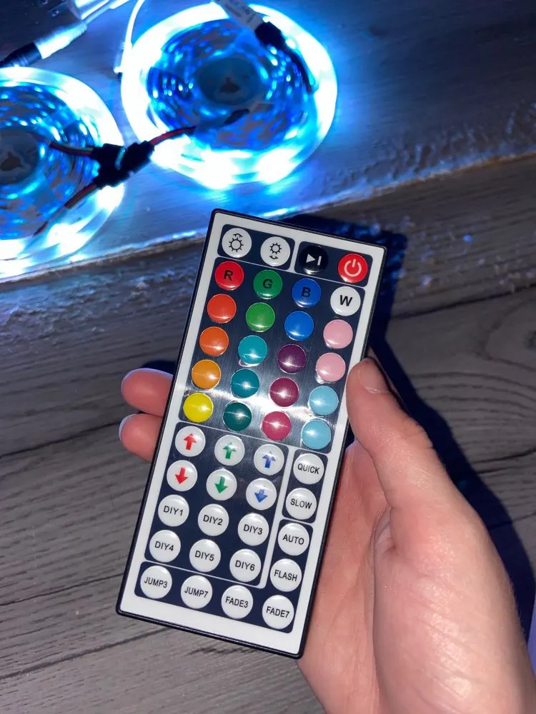 Лента супер! Блестит очень ярко. Существует несколько режимов: переливание цветов (2 скорости переливания), быстрое изменение цвета, изменение цвета, который вы выбрали, отдельный цвет с возможностью изменения его яркости. Лента очень рада, я могу заказать больше!