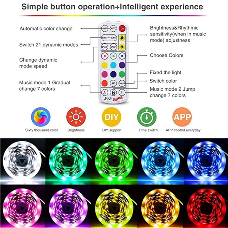 Светодиодная лента 5050 SMD 30 м 25 м, декоративная Люминесцентная гирлянда для фона, Wi-Fi Лента, светящаяся лампа RGB в форме диода
