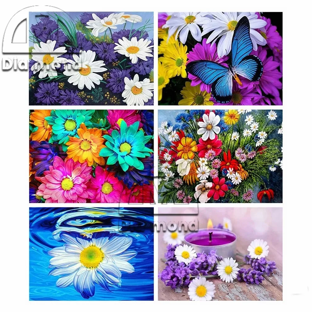 Алмазная 5D картина сделай сам, настенная вышивка с цветами, полная выкладка, круглая Алмазная вышивка, крест стежка, Маргаритка, мозаика, рукоделие, подарок