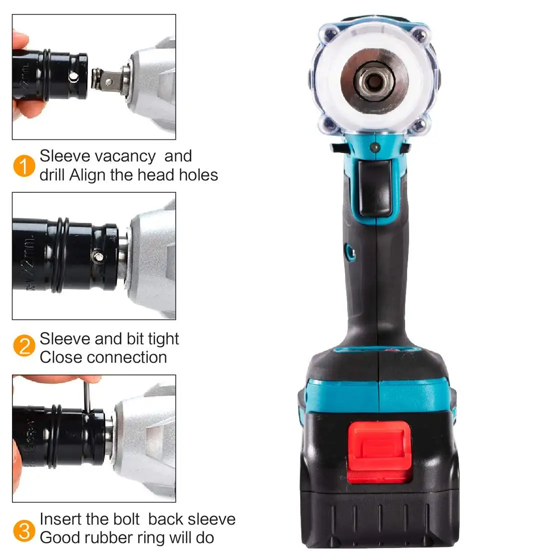 Гайковерт ударный Drillpro 388VF аккумуляторный, 12 дюйма, аккумулятор 15000Amh + муфта для батареи Makita 18 в