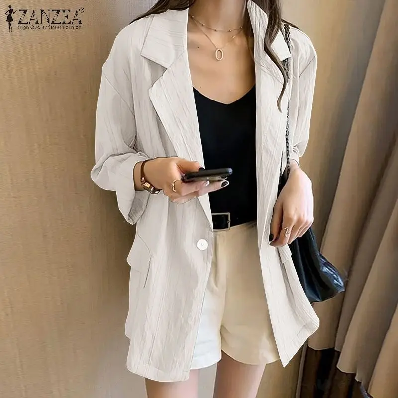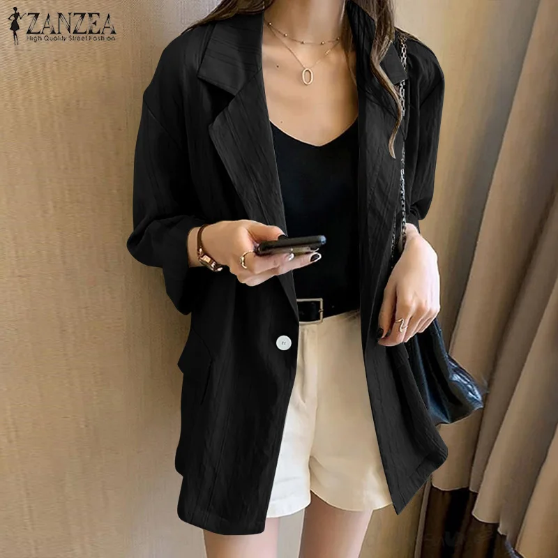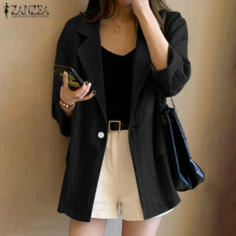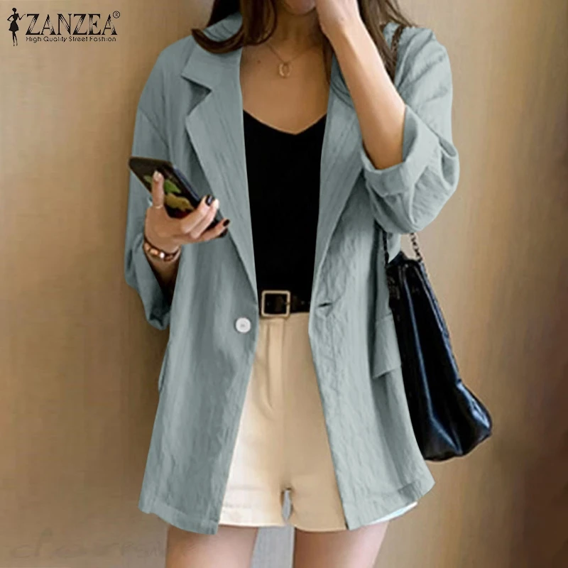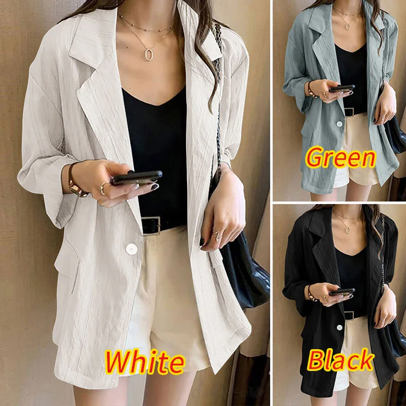 Женский однотонный Блейзер, осеннее пальто с длинным рукавом, повседневное пальто-туника на одной пуговице, большого размера, 7