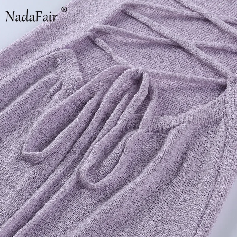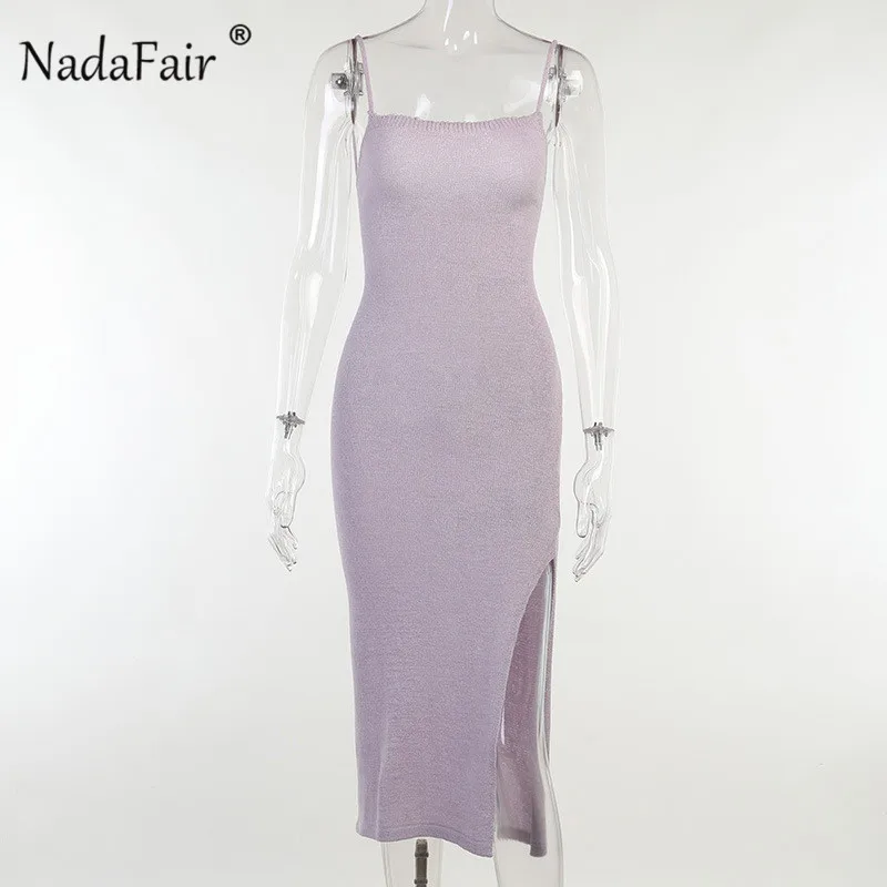 Nadafair без рукавов сексуальное с открытой спиной Бандажное летнее платье с разрезом от бедра женское 2021 трикотажное повседневное пляжное праздничное облегающее платье миди