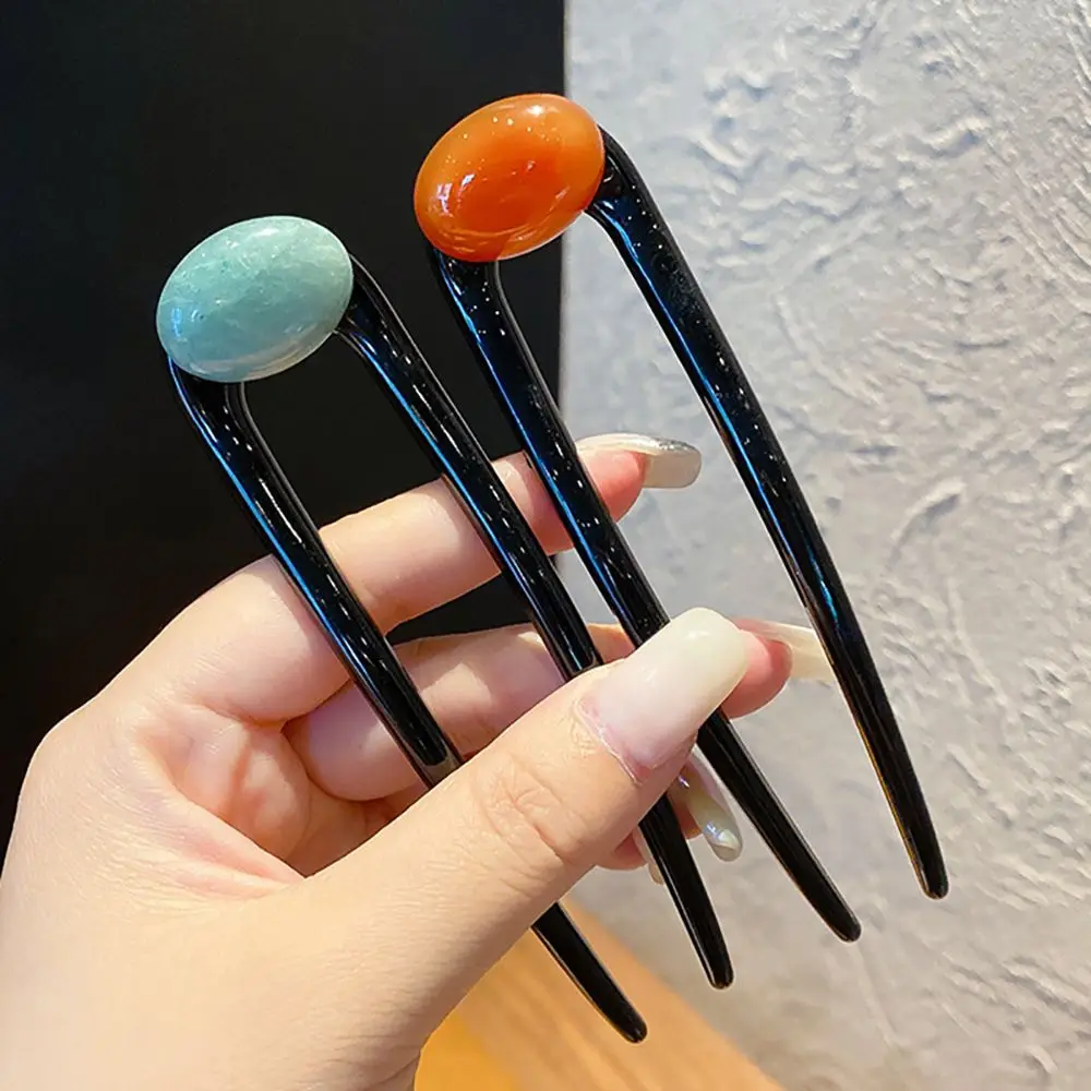 Модные женские палочки для волос с гальваническим покрытием, акриловые заколки для волос, минималистичные U-образные шпильки для волос для девочек, приспособление для пучка волос, головной убор