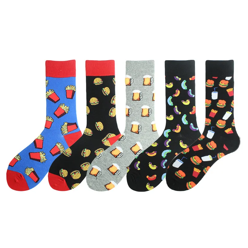 Носки мужские Смешные с 11 рисунками, хлопок, счастливые, еда, пиво, хот-дог, гамбургер, мороженое, Уличный Скейтборд для мальчиков, Харадзюку