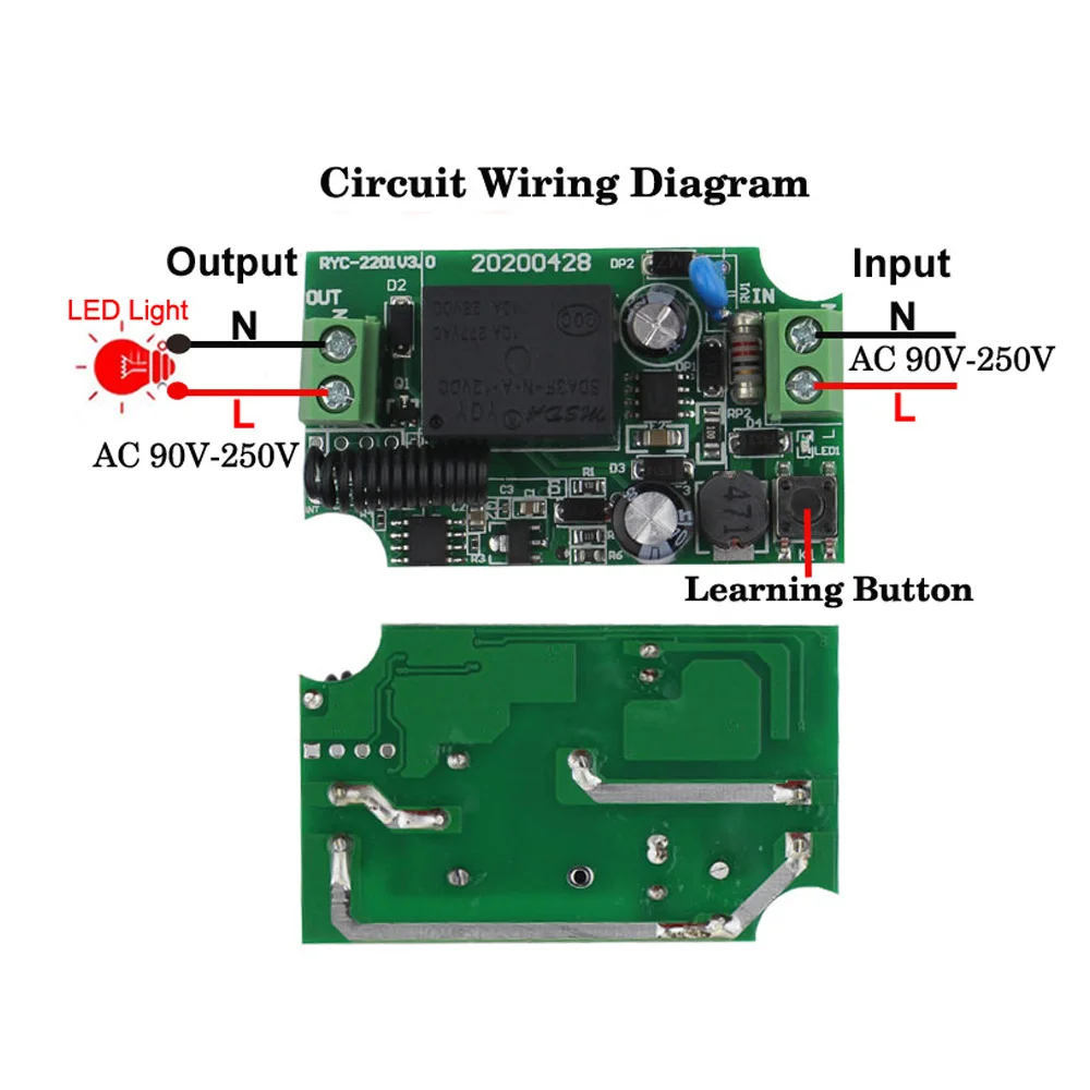Переключение: Нажмите один раз на кнопку дистанционного управления, реле подключится, дважды нажмите кнопку дистанционного управления, реле отключится.