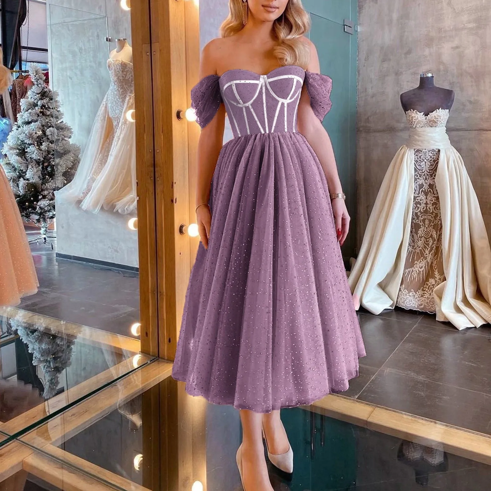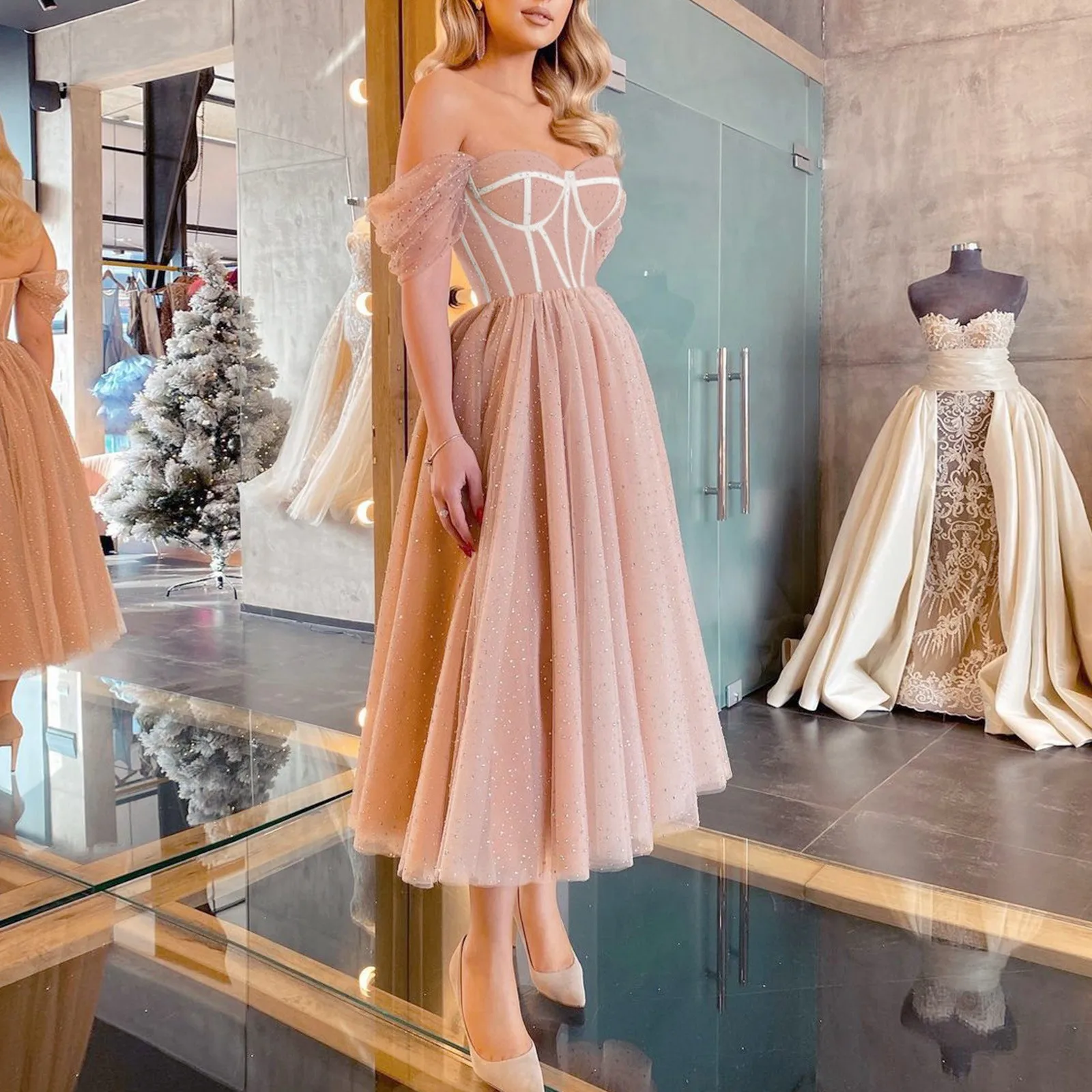 Номер моделиElegant Temperament Dress Princess Mid Length Wedding Evening Dress