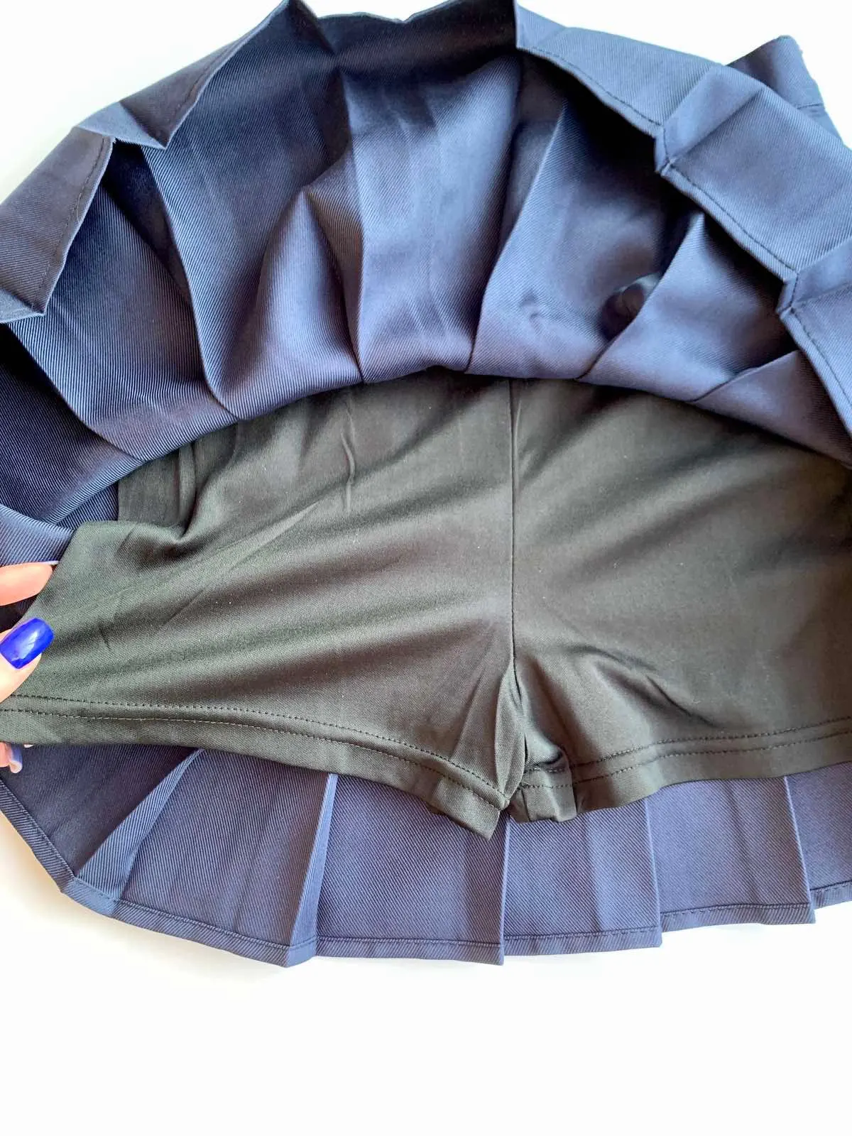 Очень красивая юбка! Размер подошёл идеально, цвет красивый синий, насыщенный , а эти складочки придают такую игривость образу! Материал приятный к телу, пошита качественно, все швы ровненькие. Юбка коротенькая, но подкладка сделана в виде миленьких шортиков, что очень удобно)) Подчёркивает все достоинства вашей фигуры, под каблук просто идеально, делает силуэт стройнее. Прекрасный магазин, очень хороший и отзывчивый продавец, всегда на связи и ответит на все ваши вопросы. Рекомендую! Вы будете в восторге!