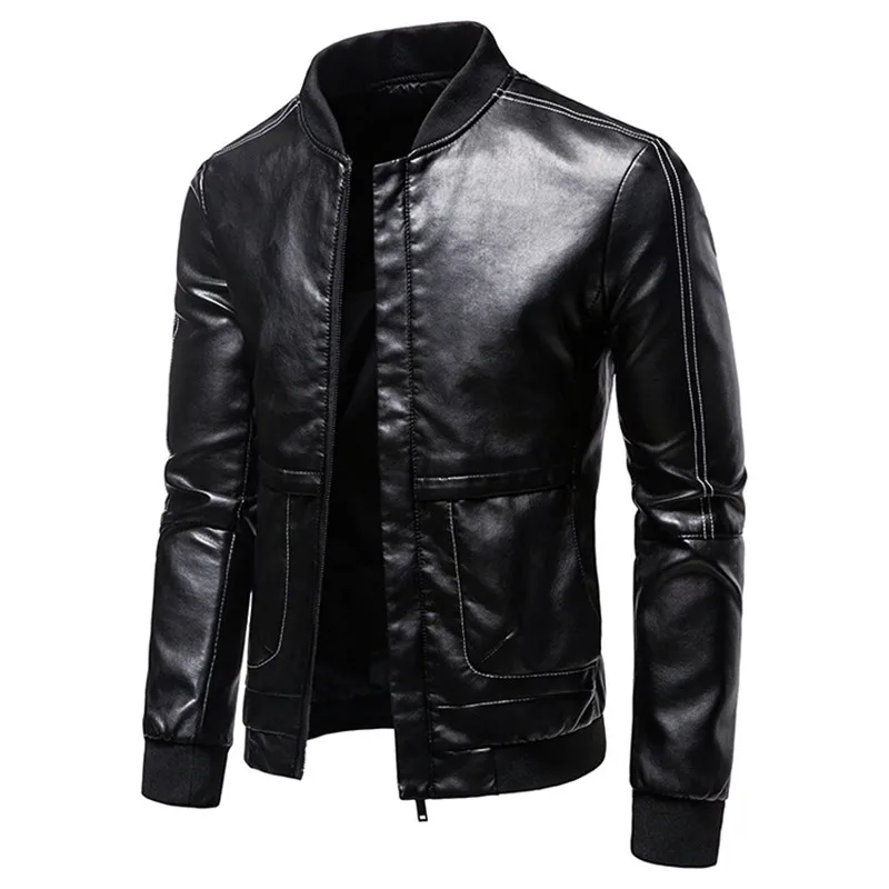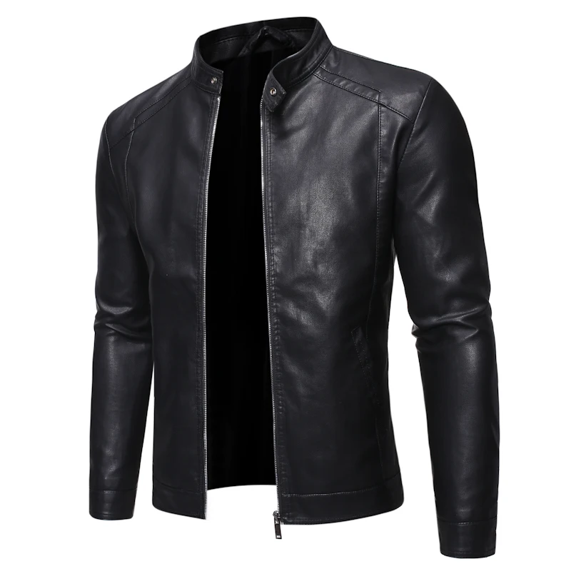 Куртка мужская из искусственной кожи, Классическая приталенная, Бай...