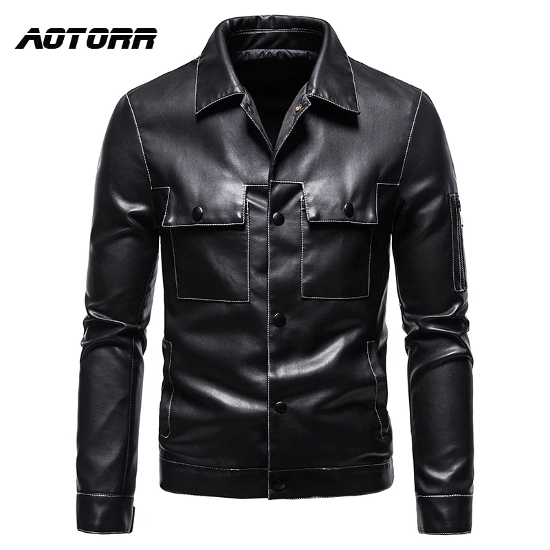 Осенняя одежда из искусственной кожи, Мужская модная однобортная ку...