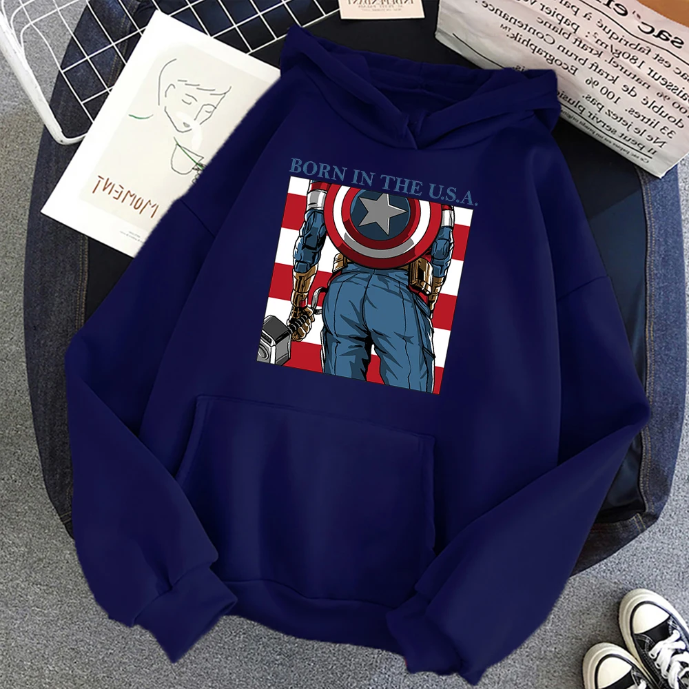 Толстовка с капюшоном Капитан Америка, Повседневный пуловер в стиле супергероев, хипстерский городской свитшот в стиле 90-х, уличная одежда, Y2k