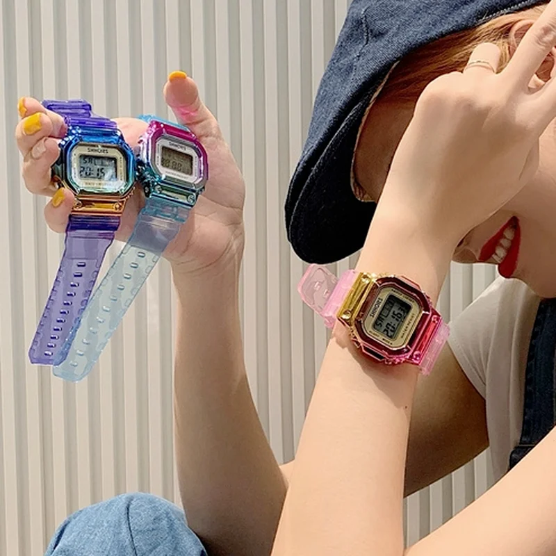 Цветные гальванические маленькие квадратные электронные часы студенческие многофункциональные водонепроницаемые светящиеся светодиодные электронные часы