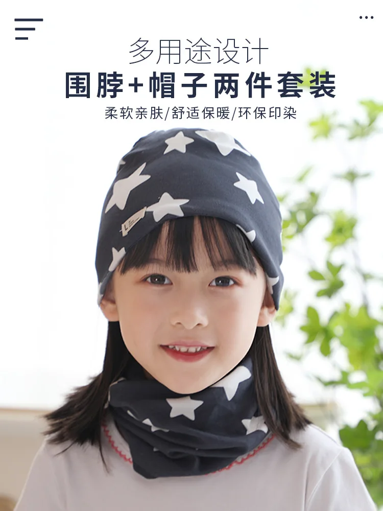 Neck scarf collar for childCotton Kids Hat Scarf Set