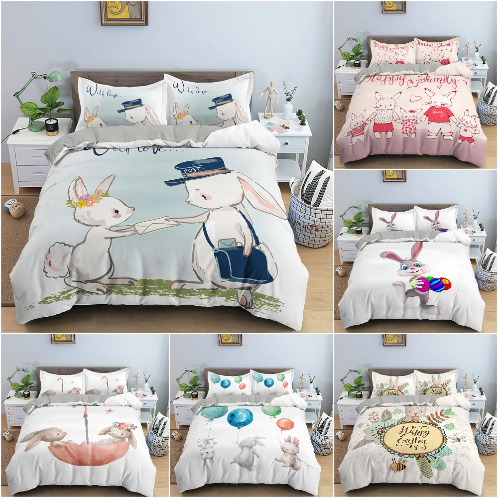 Комплект постельного белья с милым Кроликом, пододеяльник, королева...