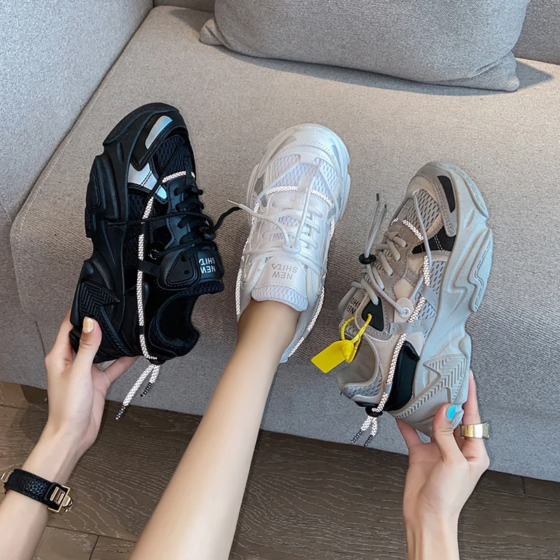Женские кроссовки на массивном каблуке 5 см, удобная дышащая сетчатая обувь, повседневные белые, на платформе