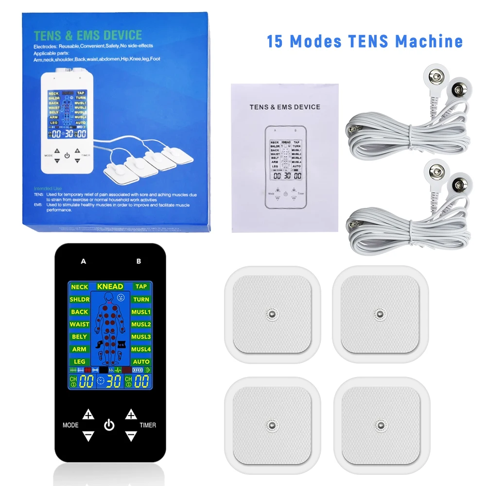 15 режимов, электростимулятор, профессиональная техника, Электростимуляция мышц, физиотерапия, массажные подушечки для тела