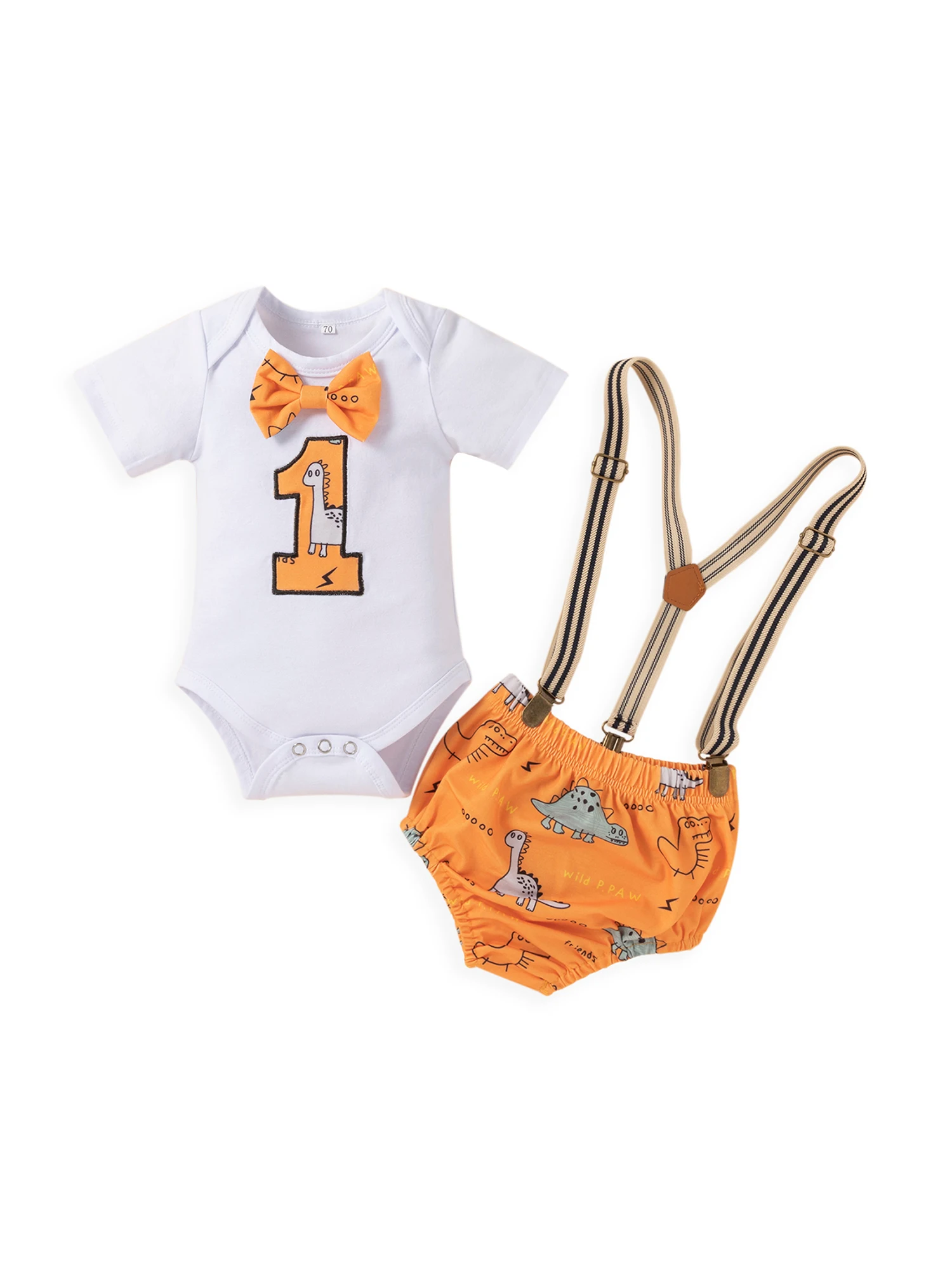 Комбинезон с круглым вырезом и короткими рукавами и шорты на подтяжках, с рисунками животных из мультфильмов, милый и стильный.