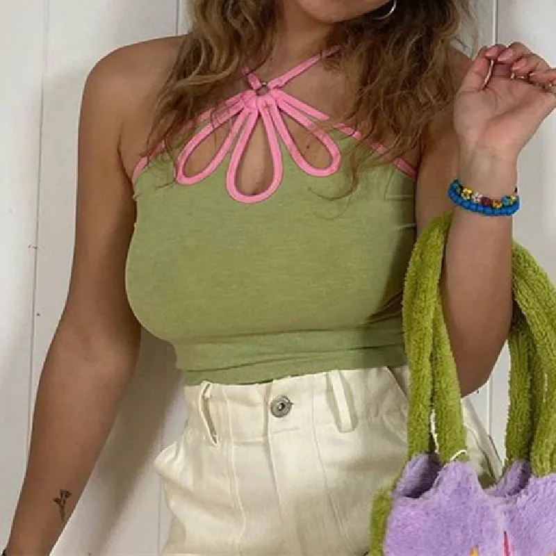 Майка женская с лямкой на шее, пикантный облегающий жилет с разрезами спереди, жилет без рукавов, разных цветов, на лето