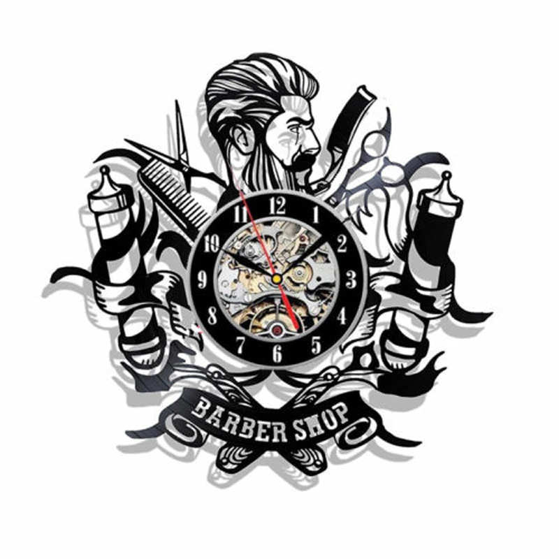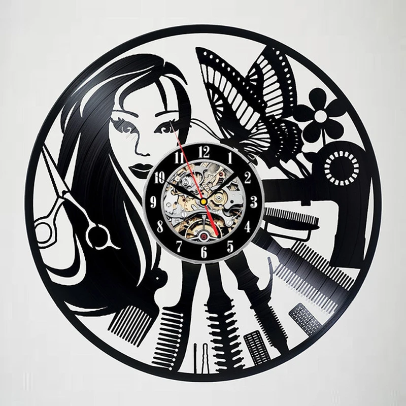 Настенные часы для парикмахерской, парикмахерской, салона красоты, виниловая пластина, настенные часы, современный дизайн, Парикмахерская, художественная вышивка