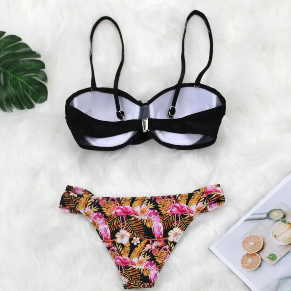 Женский купальник из двух частей, бикини пуш-ап, купальник, Классический купальник с принтом, сексуальный комплект бикини, купальник для бассейна