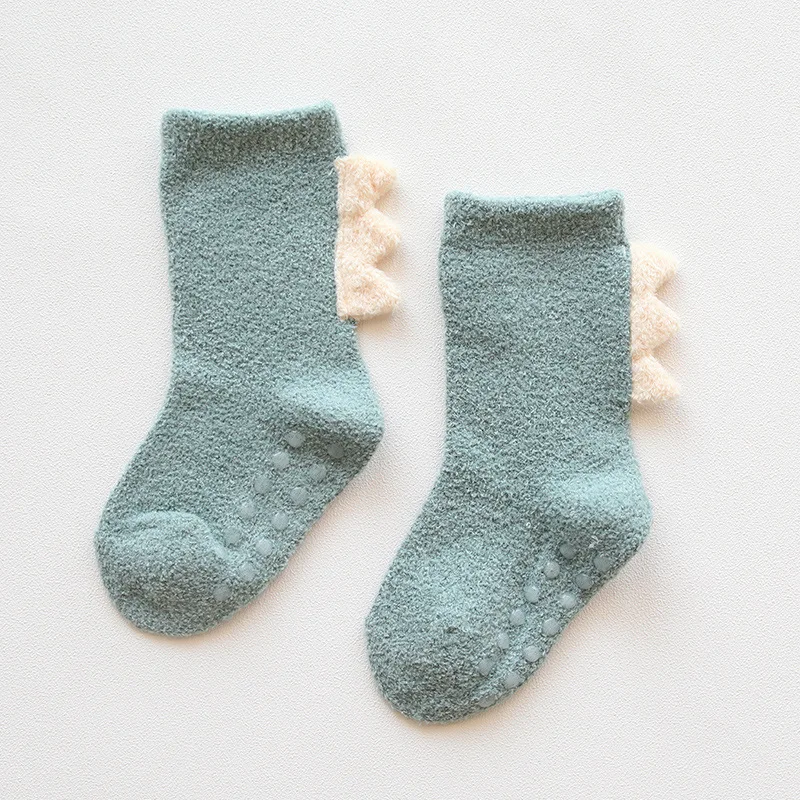 21 новый коралловый флис, Детские утепленные носки, осенний сезон, мультяшный динозавр, мягкие хлопковые детские носки для новорожденных