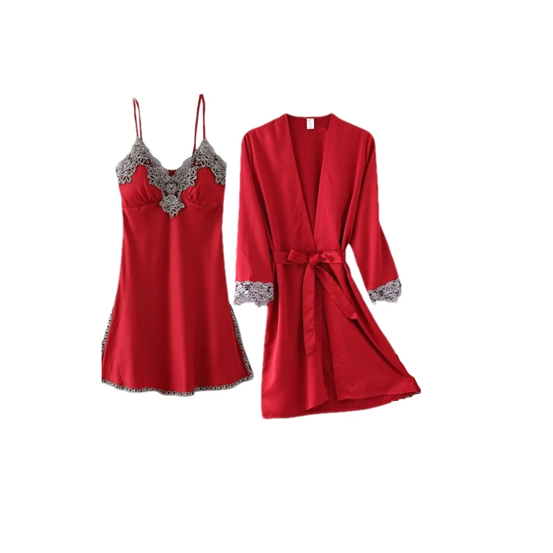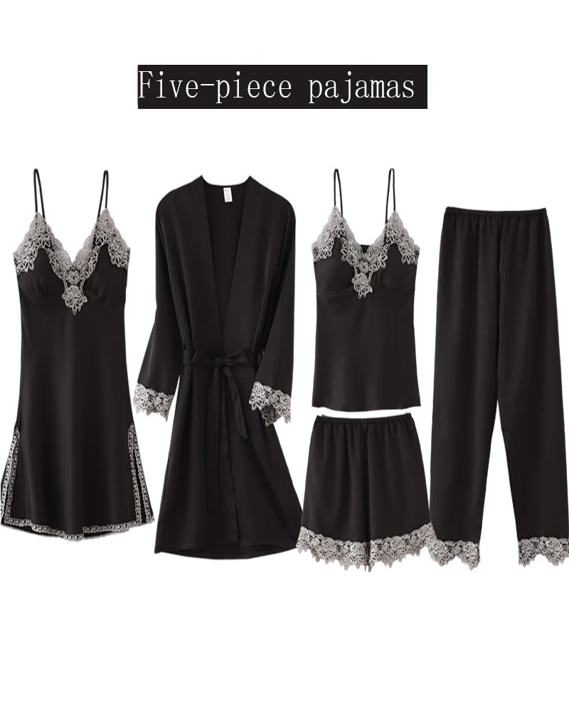 Женский комплект из 5 предметов, ночная рубашка из искусственного шелка с нагрудной подушкой, халат для дома, пижама с длинными рукавами