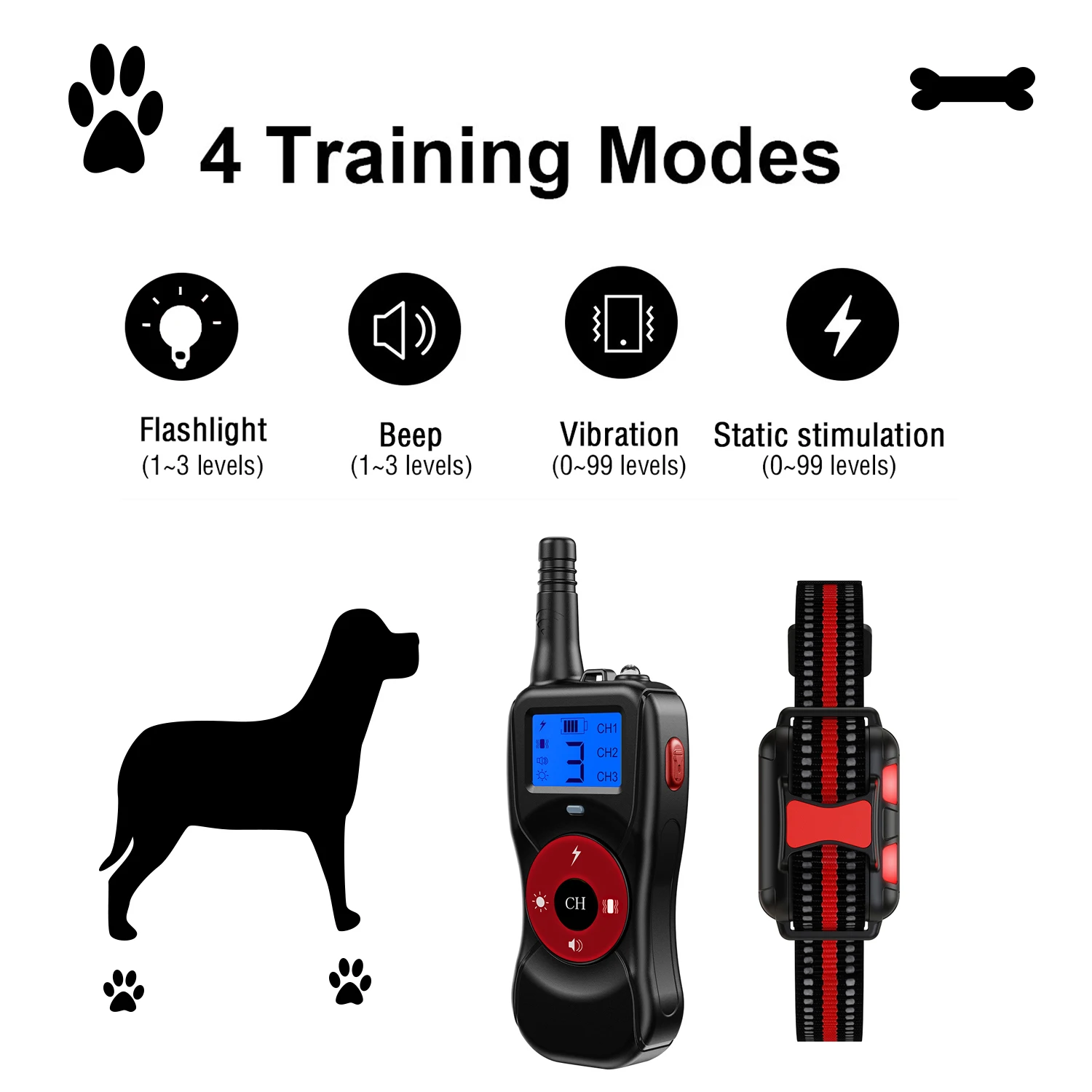 Электрический ошейник для дрессировки собак, антилай, стоп-шок, дистанционное управление, водонепроницаемый, перезаряжаемый, для всех размеров, с вибрацией и звуком