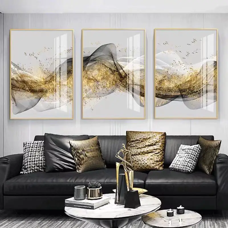 Нордический современный минималистсветильник лый роскошный фон для дивана в гостиной креативная чернильная Золотая фольга птица Триптих Печать на холсте