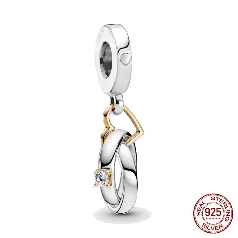Новинка 2021, двухцветные Свадебные Кольца из стерлингового серебра 925 пробы, Подвески, подходят для оригинальных браслетов Pandora, для женщин, сделай сам, ювелирное изделие