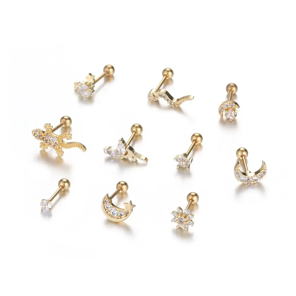 Модные 20 г винтовые шпильки Cz Змея Ящерица Геккон Цветок Луна хрящи Спиральные серьги для пирсинга из нержавеющей стали ювелирные изделия