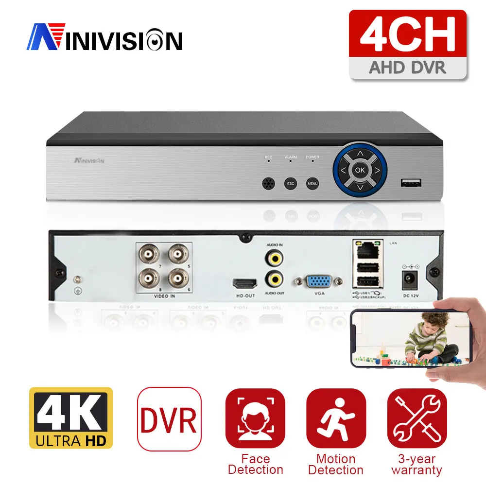 NINIVISION 4CH 8CH 8MP 5MP AHD DVR Hybaird NVR Xmeye Обнаружение человеческого лица 4K видео рекордер для 8MP AHD CVI TVI CVBS CCTV камеры