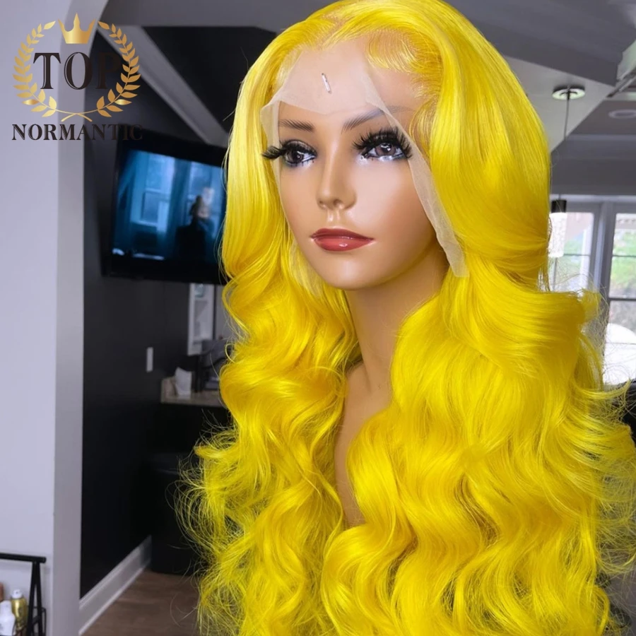 Topnormantic желтый цвет 13x 4 кружевные передние парики предварительно выщипанные волосы Remy бразильские человеческие волосы свободные волнистые парики для женщин