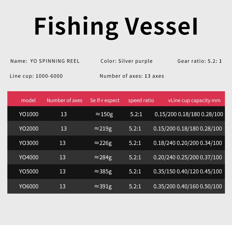 YO1000: 0,15 мм/200 м, 0,18 мм/180 м, 0,28 мм/100 мYO2000: 0,15 мм/200 м, 0,18 мм/180 м, 0,28 мм/100 мYO3000: 0,18 мм/240 м, 0,20 мм/200 м, 0,34 мм/100 мYO4000: 0,20 мм/240 м, 0,25 мм/200 м, 0,37 мм/100 мYO5000: 0,35 мм/150 м, 0,40 мм/120 м, 0,45 мм/100 мYO6000: 0,35 мм/200 м, 0,40 мм/160 м, 0,50 мм/100 мYO7000: 0,32 мм/200 м, 0,40 мм/160 м, 0,50 мм/110 мDC1000: 1,0/100 мDC2000: 2,5/ммDC300: 3/90 мDC4000: 3/100 мDC5000: 4/100 мDC6000: 5/100 мDC7000: 6/100 м