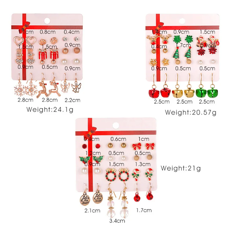 12 шт. рождественские серьги для женщин, Рождество серьги-гвоздики ...