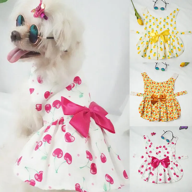 Летнее платье принцессы для собак, юбка с принтом фруктов для маленьких собак, милая оранжевая вишня, ананас, одежда для щенков, одежда для домашних животных