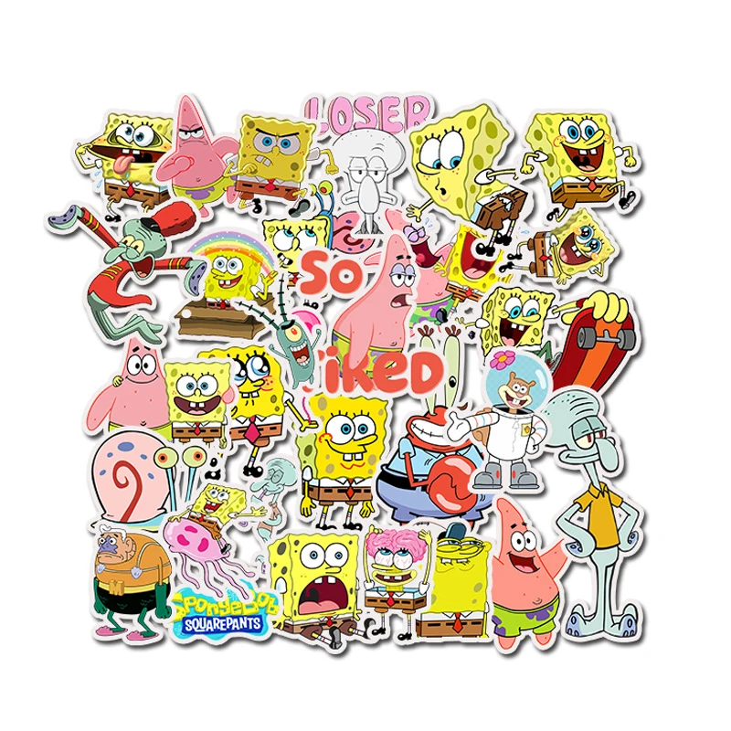 50 шт., водонепроницаемые наклейки на компьютер, Губка Боб, скейтборда