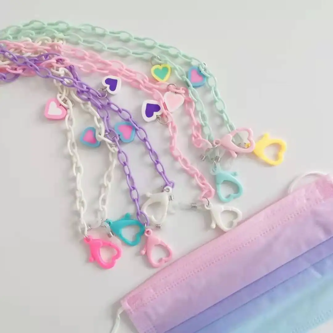 Детская цепочка для маски, из акрила, карамельных цветов, с сердцем, для очков