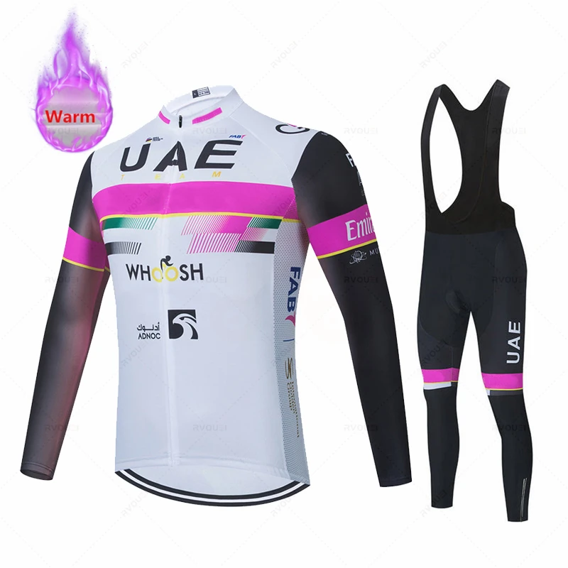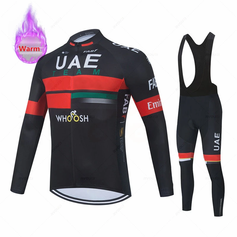 Зимний теплый флисовый комплект одежды для велоспорта команды ОАЭ 2021, гоночные велосипедные костюмы, одежда для велоспорта